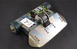 Many antweights (like Dead Air pictured to the right) use these micro gearmotors because they are light-weight but still give your bot some great maneuverability. They are sold by both Pololu and ServoCity, as well as several other websites. They come in a variety of gear-ratios, but we recommend using the 30:1 or the 50:1 versions. You can mount these motors to your bot very easily with the use of Pololu's brackets and choose from a wide selection of wheels on Pololu's website as well.